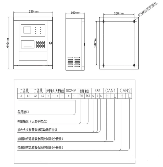 消防應(yīng)急疏散余壓控制器接線示意圖