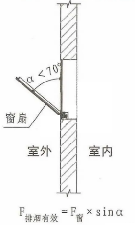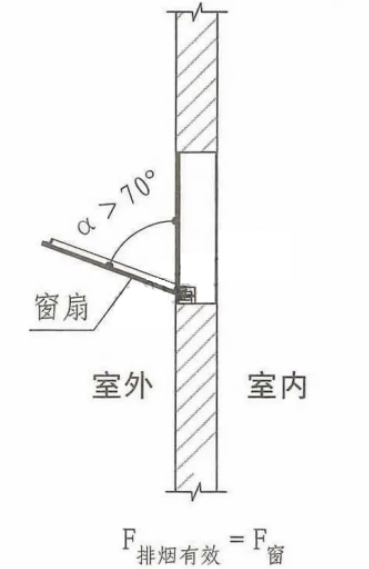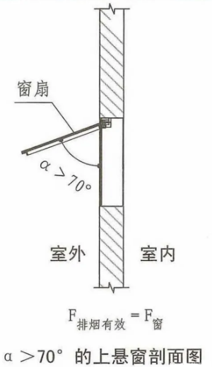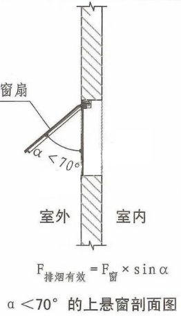 當(dāng)采用開窗角大于70°的懸窗時,其面積應(yīng)按窗的面積計算:排煙有效面積=可開啟窗的面積