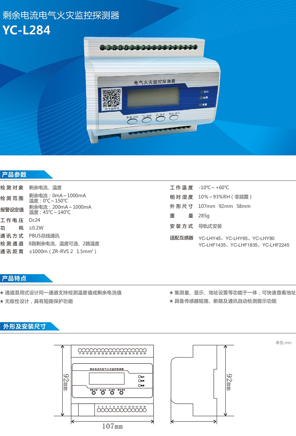 YC-L284 剩余電流電氣火災監控探測器